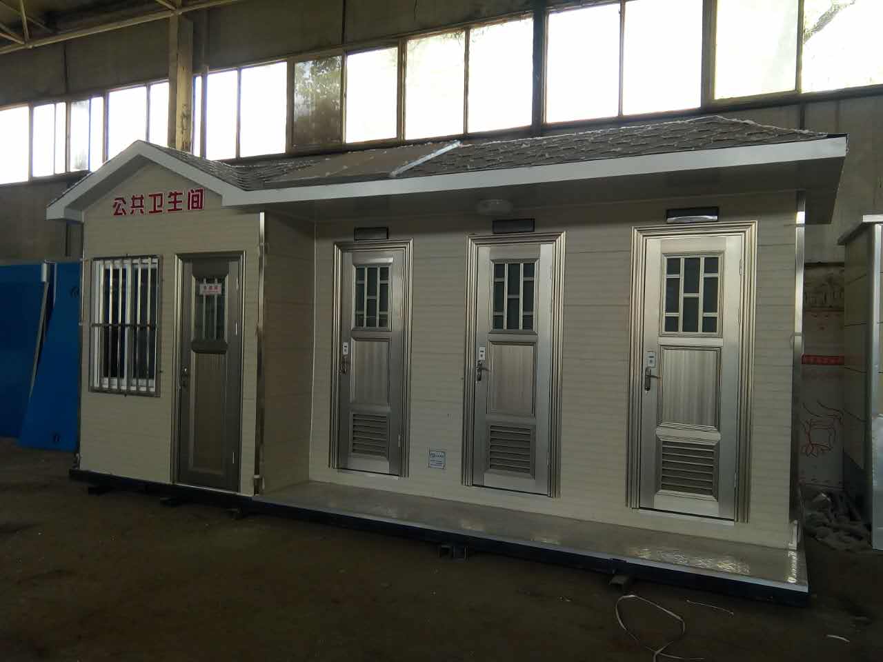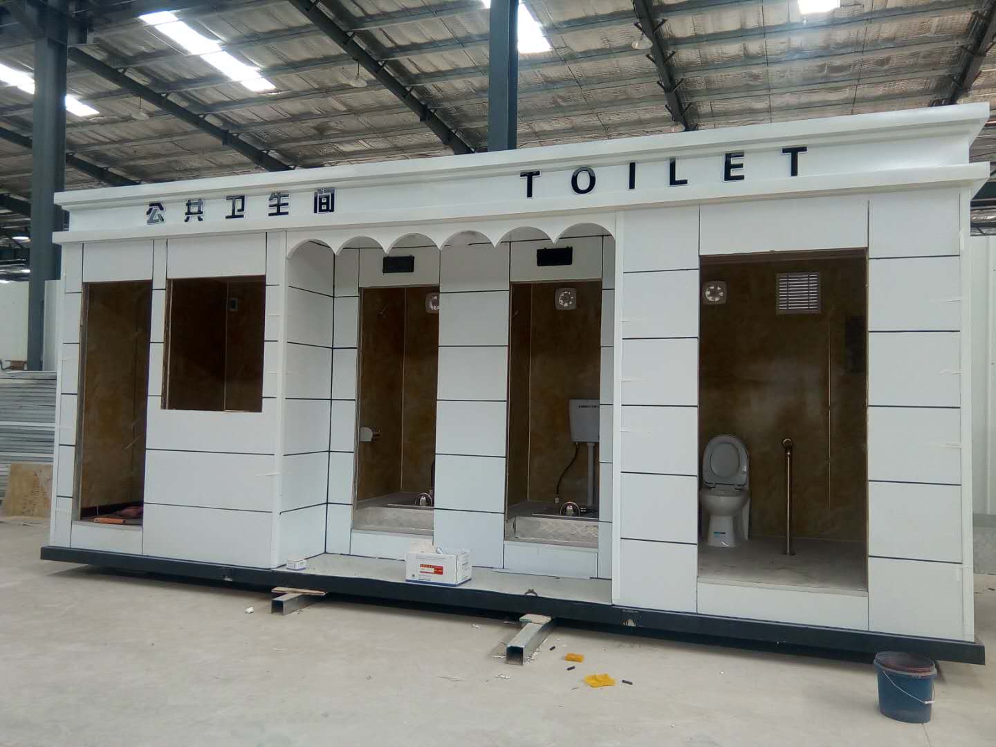 移動廁所簡介及制作方法:1、房體結構: 采用輕鋼龍骨結構,鋼材全部使用標準鍍鋅鋼材。根據房體的大小特選用國標方管(50-100)焊接而成。鍍鋅管厚度為2.8mm,方管經過除銹后進行鍍鋅、防腐處理,這樣就會延長廁所使用壽命.2、墻體: 墻板采用金屬雕花板,金屬雕花板是保溫、隔熱、環保、阻燃、防雨、防凍、隔音、抗震等...